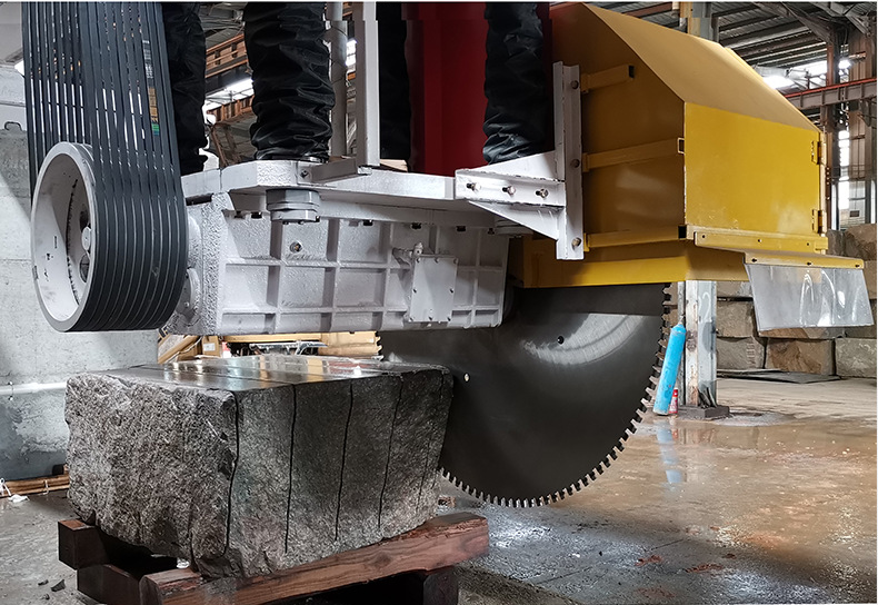 ,大型荒料切割机,是原石加工成板材的切石装备。本机电控接纳西门子设置装备摆设,品德不变性好,主动化机能高。主轴起落接纳6根圆柱做导轨,保障零件布局不变,起落安稳。